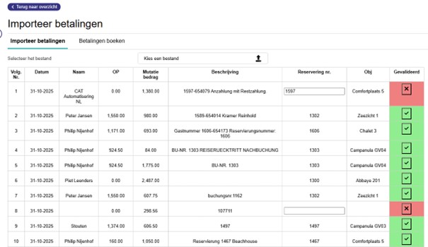 Download het CAMT053-bankbestand bij je bank en importeer het in Reflex Booking. Het systeem herkent automatisch reserverings- en klantnummers uit de omschrijving, toont een overzichtelijk voorstel van matches en verwerkt de hele batch met één klik.